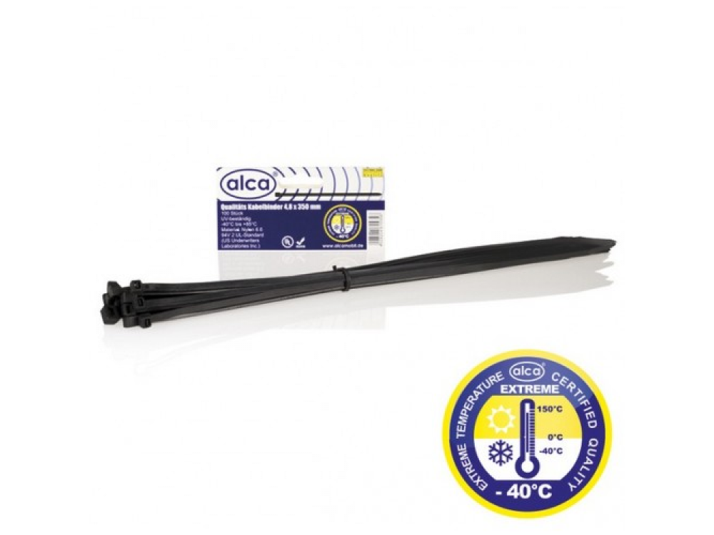 Хомут—стяжка кабельная пластиковая W4.8 L350, цвет черный, 50 шт. в упаковке, температура эксплуатации от — 40 до + 85, материал нейлон, устойчивость к окислению и травлению.
