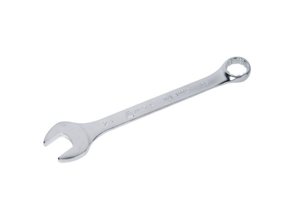 Ключ комбинированный МАСТАК 021-10023H применяется для выполнения любых видов работ с крепежом - как дома, в гараже, в авто-слесарной мастерской, станции технического обслуживания авто, мото и другой техники, так и на производстве. Изготовлен из инструментальной легированной хром-ванадиевой стали специального сплава, состоящего из 15 элементов, входящих в его состав. Хромированное покрытие защищает от коррозии и придаёт благородный матовый оттенок. Особенности: - Специальный изгиб 15° позволит работать в местах с ограниченным доступом к крепежу; - Накидная и рожковая части помогут подобраться к крепежу как с торца, так и с боку, в зависимости от места выполняемых работ; - 12-тигранный профиль накидной части универсален в работе с головками болтов или гайками как 6-ти, так и 12-тигранного профиля. Технические характеристики: - Размер: 23 мм - Длина(L): 270 мм