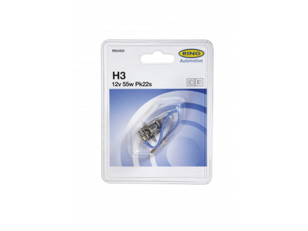 Автолампа RING в пластиковой упаковке (по 1 шт): 12 вольт, мощность 55W, цоколь H3 (PK22s)
