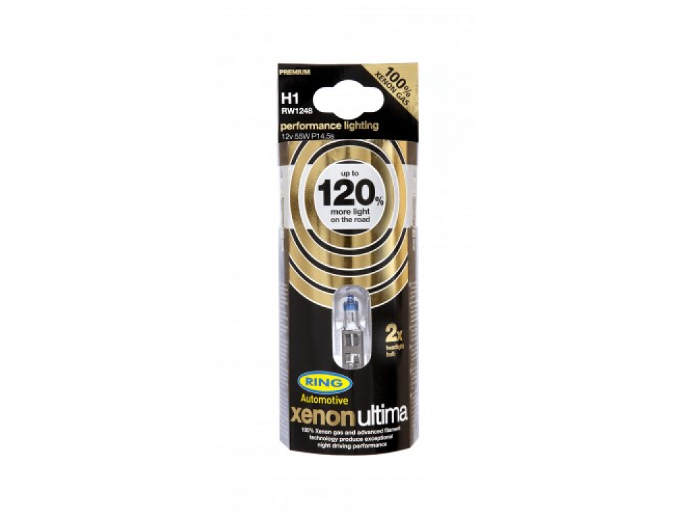 Автолампа XENON ULTIMA +120% в пластиковой упаковке (по 2 шт): 12 вольт, мощность 55W, цоколь H1 (P14.5s)