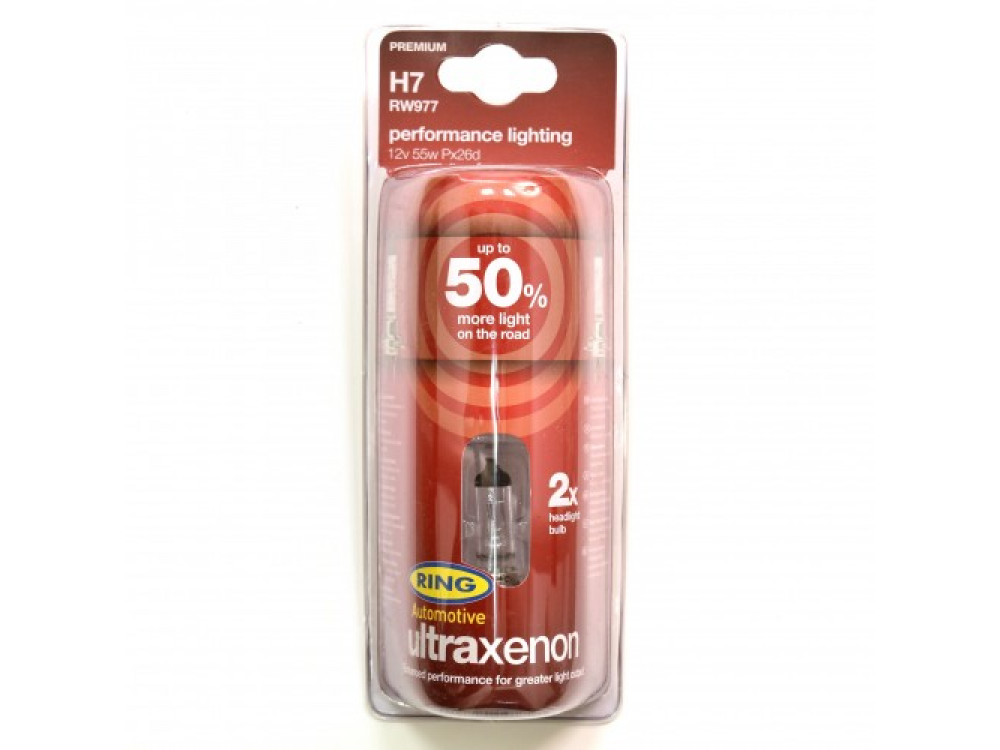 Автолампа ULTRA XENON +50% в пластиковой упаковке (по 2 шт): 12 вольт, мощность 55W, цоколь H7 (PX26D)