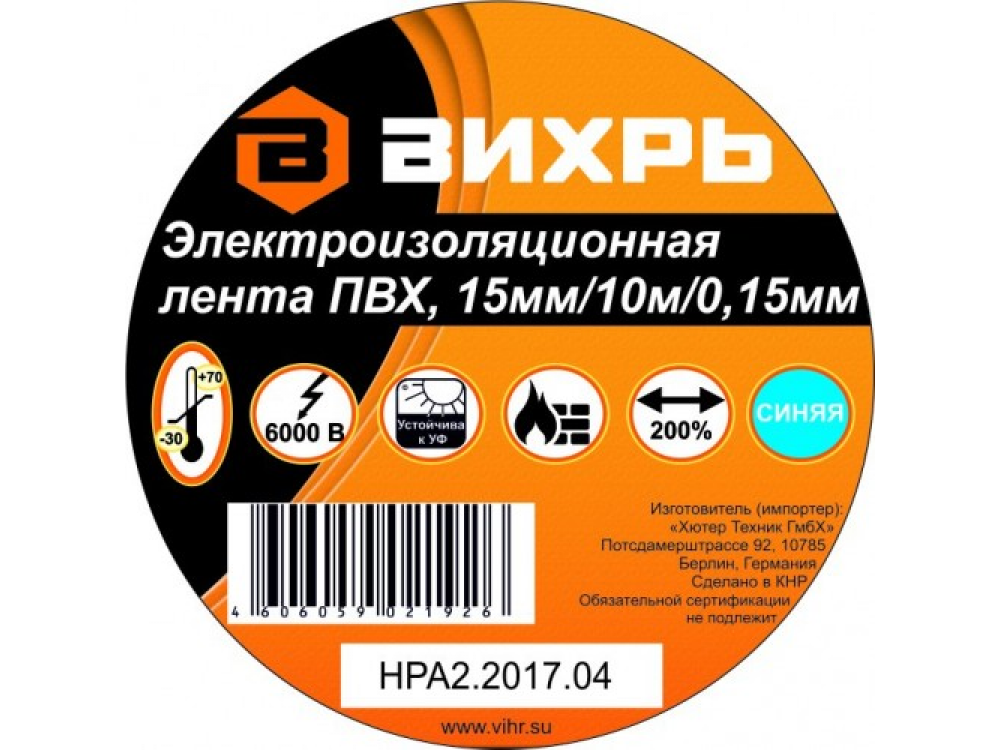 Изоляционная лента ВИХРЬ используется для проведения всех видов электромонтажных работ: электрической изоляции проводников, сращивания и жгутирования, защиты от механических повреждений, цветовой маркировки. Изолента изготовлена на основе пленки из поливинилхлоридного изоляционного пластиката. Специальные добавки, используемые при производстве данного материала, повышают эластичные свойства ленты, увеличивают ее долговечность и обеспечивают устойчивость к горению.