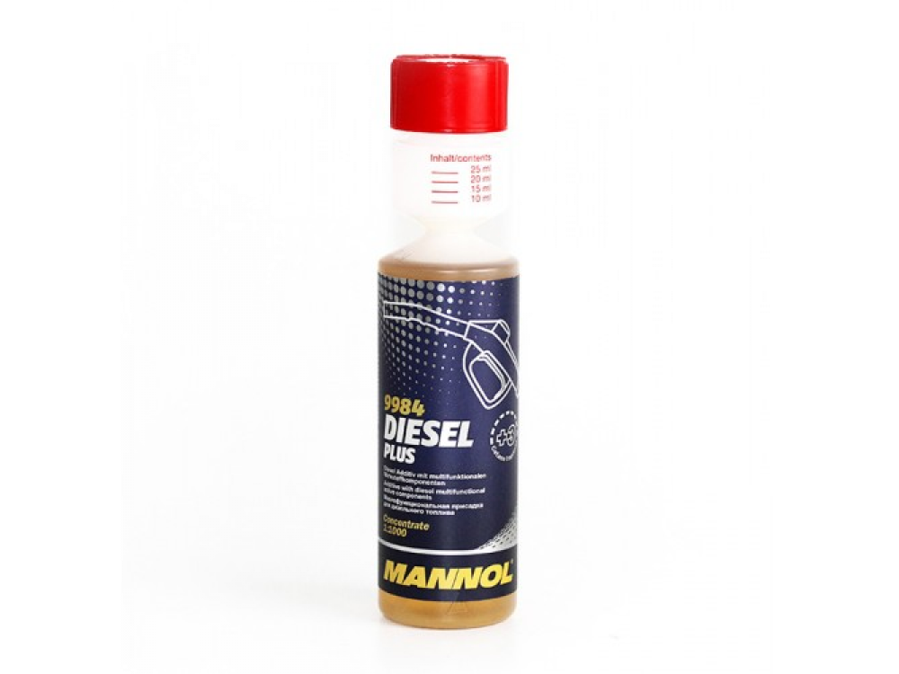 MANNOL Diesel Plus 1:1000 – комплексная присадка в дизельное топливо для улучшения эксплуатационных характеристик дизельных двигателей. Тщательно подобранные компоненты позволяют достичь при регулярном применении ощутимое улучшение эксплуатационных характеристик. При указанном дозировании (1:1000) повышает цетановое число на 3 пункта, улучшая при этом процесс воспламенения. Содержит детергенты для очистки агрегатов впрыска и предотвращения пригорания и образования смолистых отложений на иглах распылителя. Высокотехнологичный пакет добавок оптимизирует рабочие характеристики дизельных двигателей, стабилизирует процессы старения и окисления и очищает форсунки.