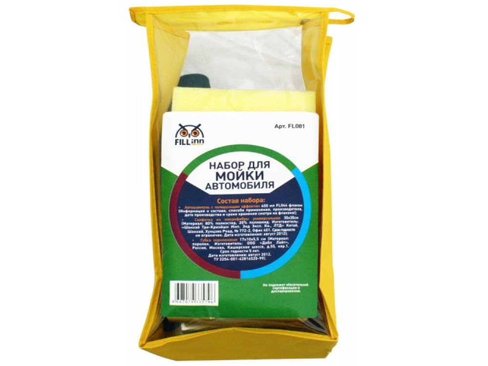 Состав набора:Шампунь с полирующим эффектом FL044Губка поролоновая для мытья 17х10х5,5 смСалфетка из микрофибрыКосметичка