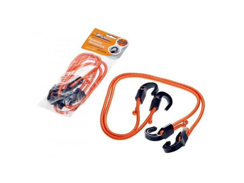 В комплекте резинок для крепления представлены 2 резинки длиной 80см. Крючки из пластика выполняют функцию фиксатора груза в салоне. Решение изготавливать крючки из пластика позволяет снизить стоимость изделия, не сыграв на качестве фиксации. Диаметр резинок 8 мм обеспечивает надежное препятствие для перемещения по салону перевозимых предметов.