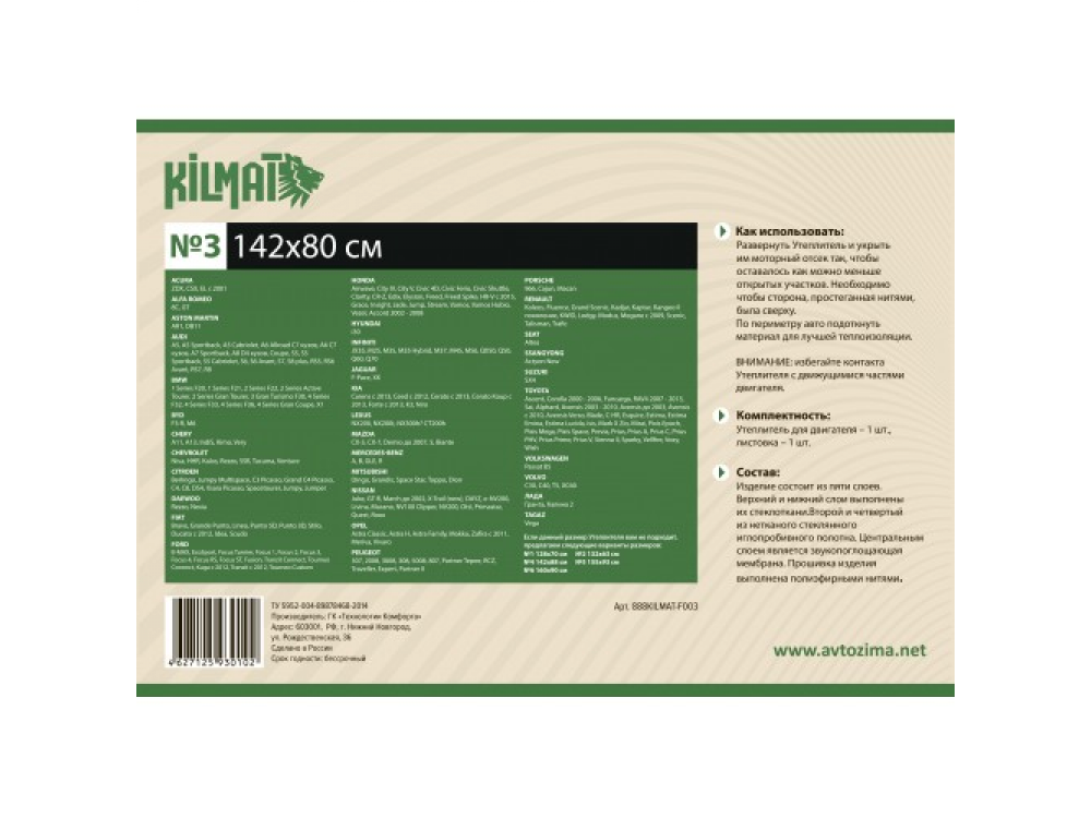 Утеплитель предназначен для более быстрого прогрева двигателя и салона автомобиля в холодное время, медленного остывания, создания комфортной атмосферы салона. Уникальная "Спрут"-технология производства обеспечивает изделию повышенную эффективность. Запатентован и сертифицирован для автомобиля. Показатели изделия: